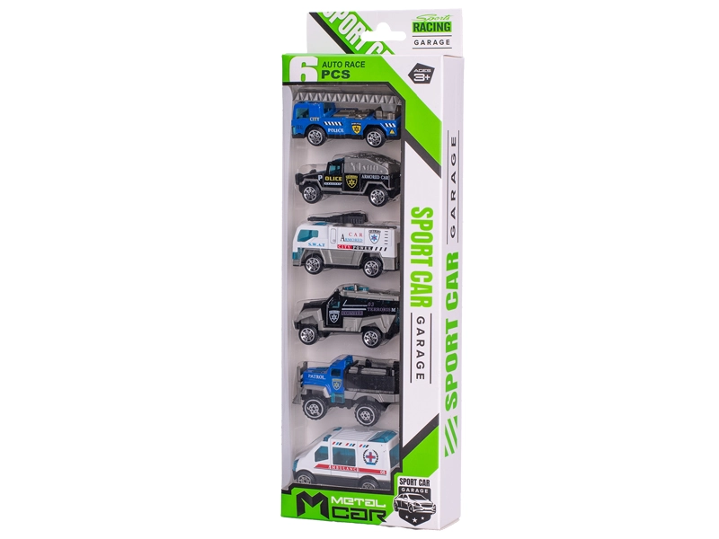 Autíčka sú vyrobené z odolného kovu a vďaka voľnobehu hladko jazdia po rôznych povrchoch. Balenie obsahuje 6 rôznych modelov policajných vozidiel, ktoré zaistia pestrosť hier a rozvoj fantázie.