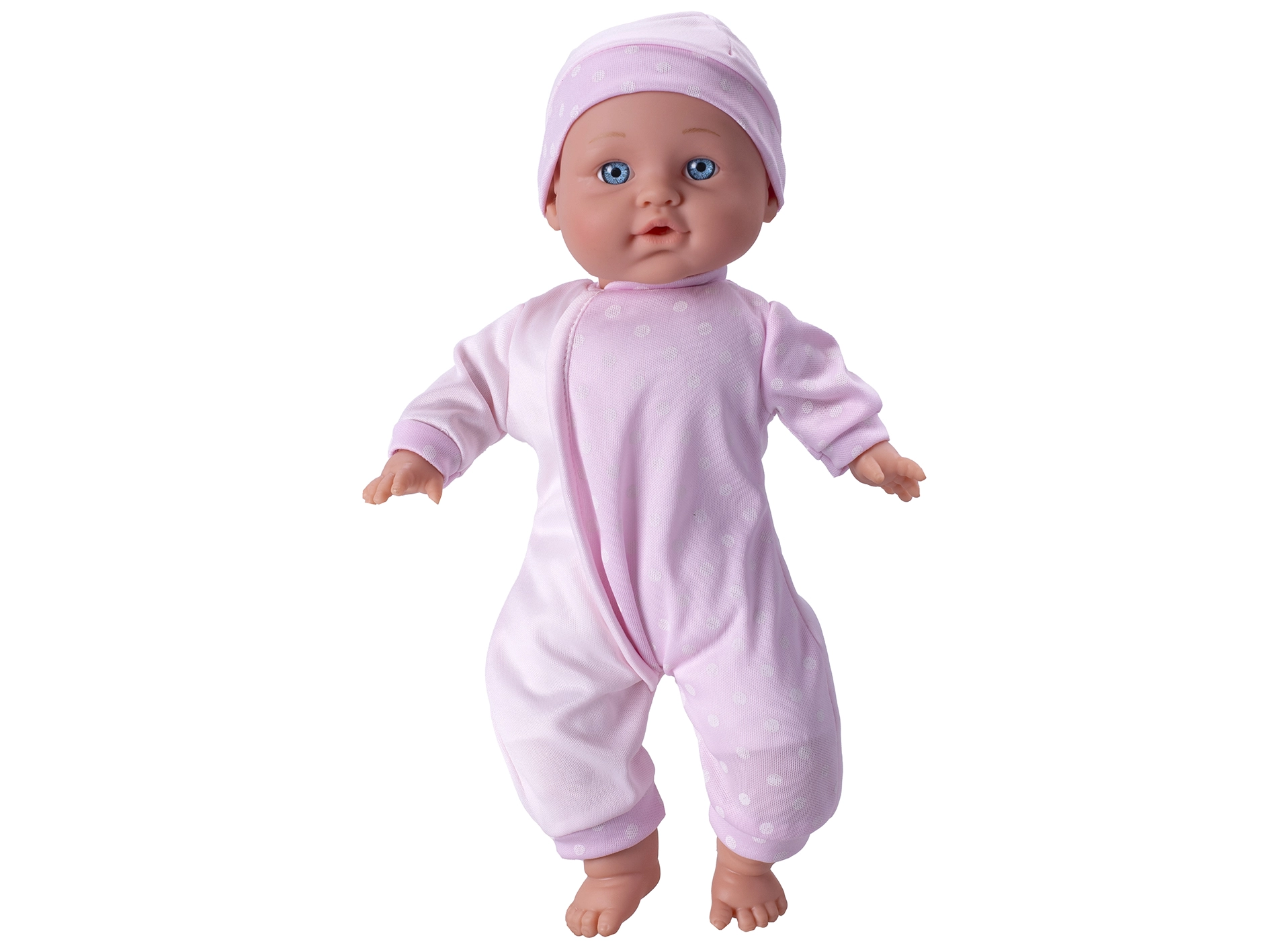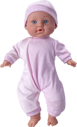 Roztomilé bábätko s mäkkým telíčkom s veľkosťou 30 cm je ideálnou hračkou pre malé dievčatká. Vďaka ľahkému a ľahko uchopiteľnému prevedeniu skvele padne do detských rúk. Bábika je oblečená v ružovom oblečku s čiapočkou, takže je nielen krásna na hranie, ale aj ako dekorácia detskej izbičky.