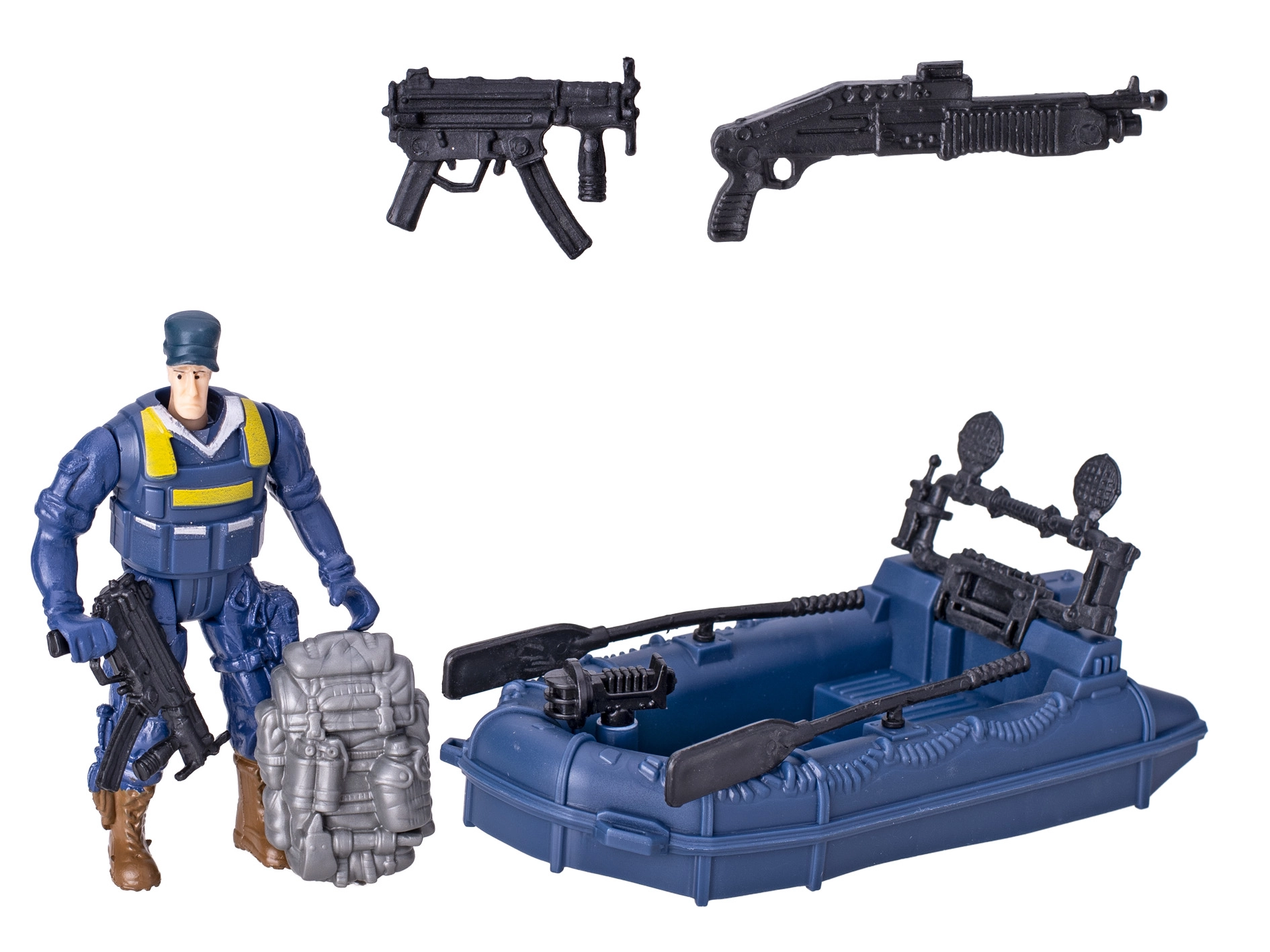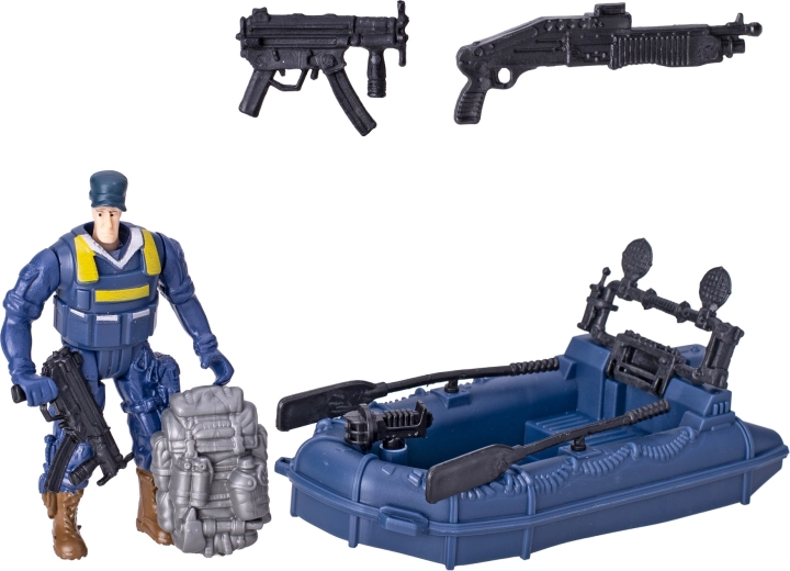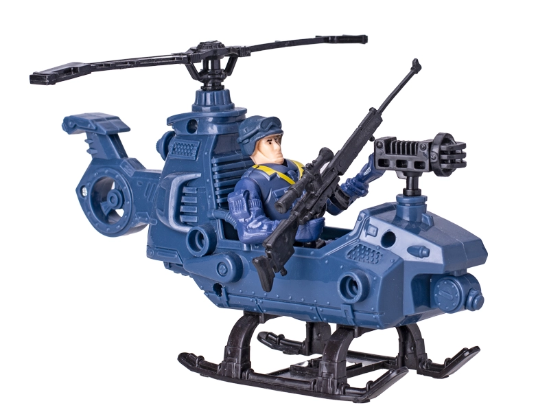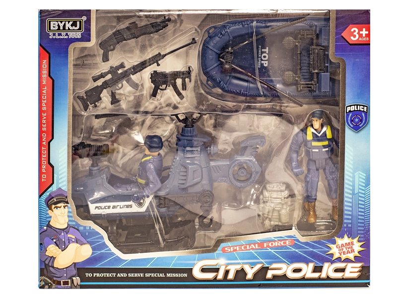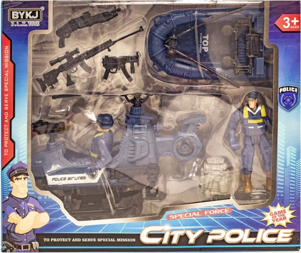 - Vrtuľník, čln, figúrky policajtov a doplnky