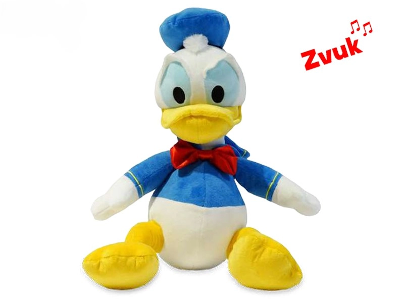 Roztomilá plyšová kačica DONALD s výškou 24 cm poteší malých fanúšikov Disney rozprávok. Je vyrobená z mäkkého a hebkého plyšu, bezpečného pre deti od 12 mesiacov. Vďaka zvukovým efektom po stlačení bruška prináša ešte viac zábavy. Súčasťou sú batérie, ktoré však nie sú vymeniteľné.