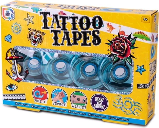 Objavte zábavnú sadu štyroch lepiacich pások, s ktorými deti ľahko vytvoria dočasné tetovanie na pokožke. Pásky sú bezpečné pre detskú pokožku, jednoducho sa aplikujú aj odstraňujú a ponúkajú rôzne motívy pre vlastný kreatívny štýl. Ideálne pre deti od 8 rokov na doma, na cesty aj ako originálny darček.