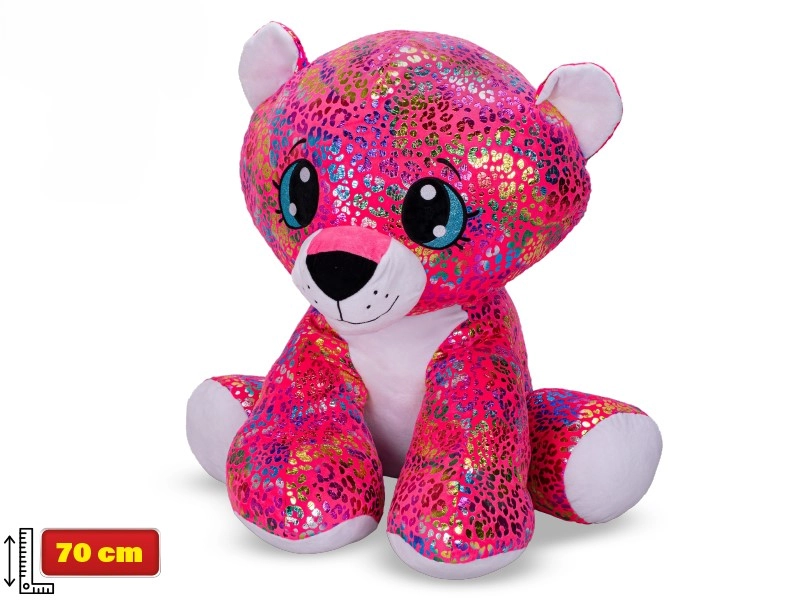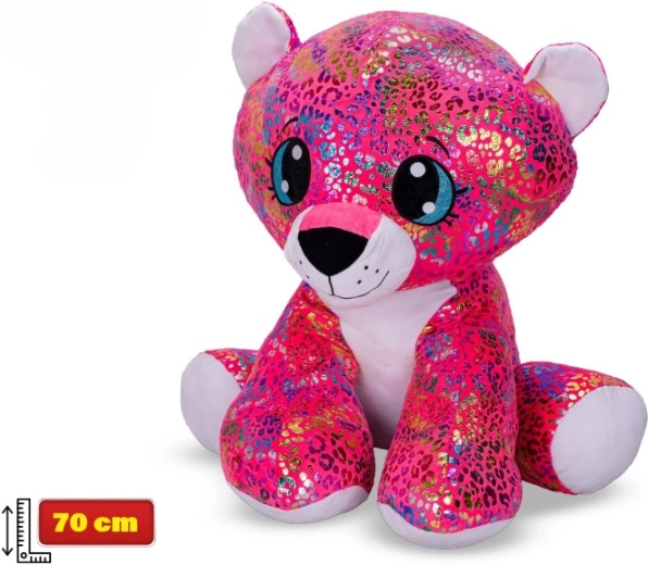 Roztomilý plyšový leopard s dúhovým sfarbením a trblietavými detailmi na ušiach a labkách si získa srdcia detí na prvý pohľad. Vo výške 70 cm v sede je ideálny na maznanie aj ako dekorácia detskej izby. Hebký, kvalitný plyš zaisťuje maximálne pohodlie a bezpečnú hru pre deti od 3 rokov.