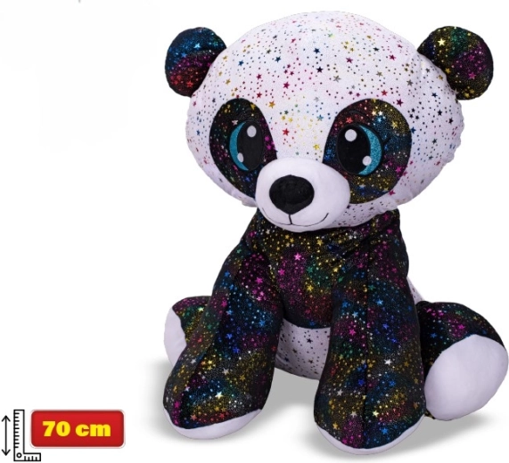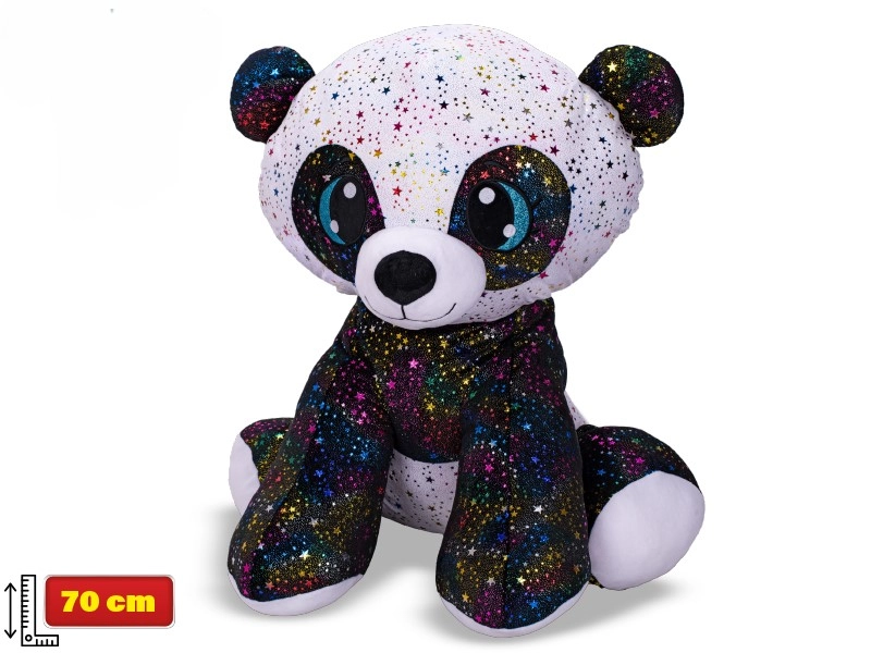 Roztomilá plyšová panda z kolekcie Plush Friends Star Sparkle je mäkučký spoločník pre deti už od narodenia. Vďaka veľkosti 70 cm a sedaciemu dizajnu poskytne bezpečné objatie, stane sa štýlovou dekoráciou detskej izby a poteší jemným plyšovým materiálom so trblietavými detailmi.