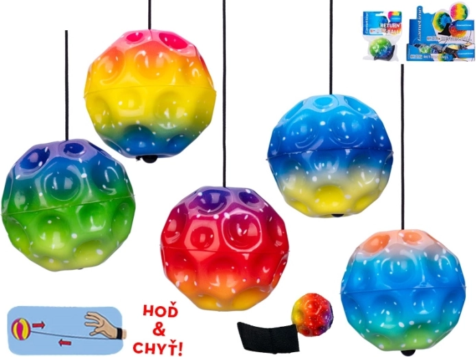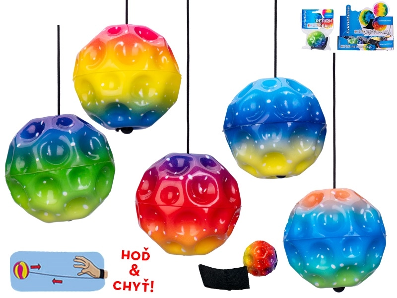 Zábavná a bezpečná penová loptička s pripevnenou gumičkou a pásikom na suchý zips sa po každom hode vracia späť na zápästie. Skvelá hračka pre deti od 3 rokov, ktorá rozvíja koordináciu ruka–oko, je ľahká a dostupná v pestrofarebných variantoch.