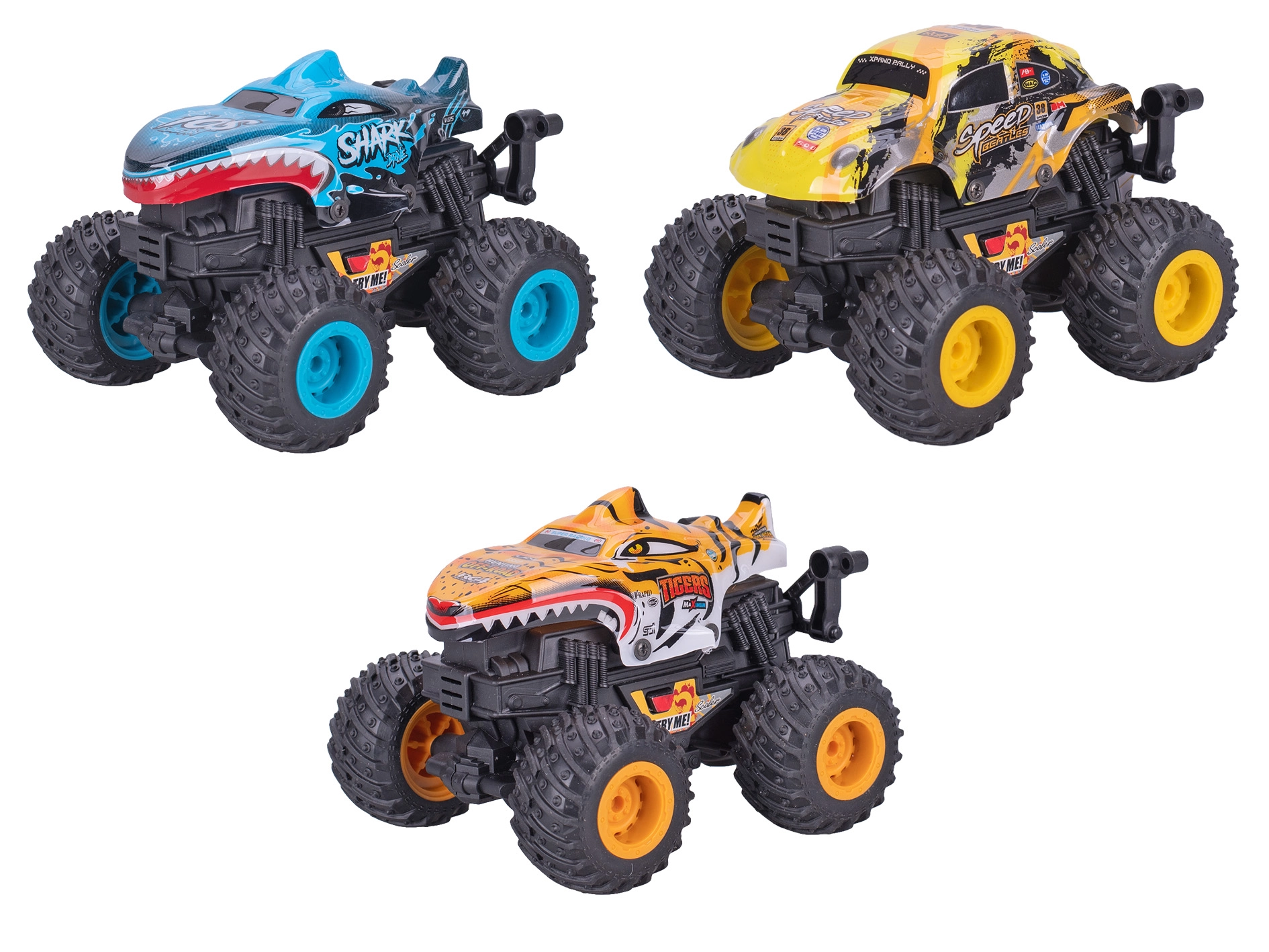 Zábavný monster truck Roadblasters s dĺžkou 12 cm na zotrvačník ponúka plynulú jazdu a pôsobivé svetelné a zvukové efekty. Deti si môžu vybrať zo šiestich originálnych variantov – žralok, tiger, chrobák, dinosaurus, pick‑up a SUV. Súčasťou balenia sú 3× LR44 batérie, takže zábava môže začať okamžite. Ideálna hračka pre malých milovníkov áut od 3 rokov.