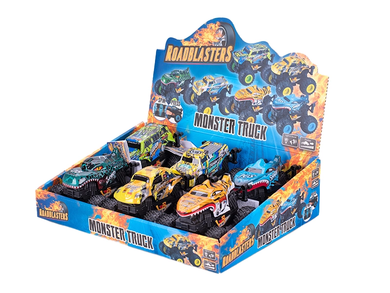 Objavte akčnú jazdu s monster truckom Roadblasters! Vďaka zotrvačníkovému pohonu sa vozidlo rozbehne plynulo a realisticky, čo zvyšuje herný zážitok. Integrované svetelné a zvukové efekty dodajú hre na dramatičnosti a deti si užijú veľa zábavy doma aj vonku.