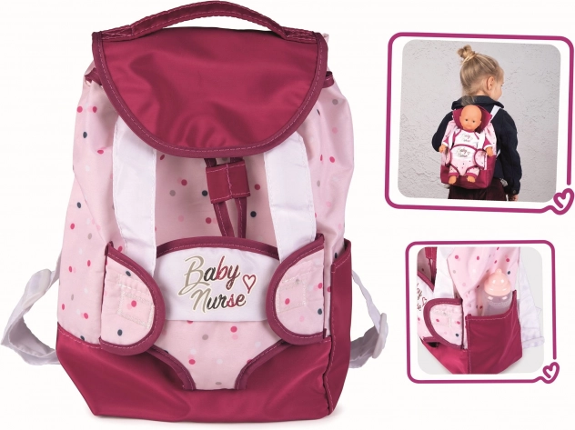 Nosič pre bábiky s úložným priestorom sa dá pohodlne nosiť na chrbte a vďaka šnúrkam a krytu upevnenému suchým zipsom sa na cestách nič nestratí. Na boku má vrecko na fľašu pre bábiky. Popruhy batohu sú nastaviteľné a dajú sa prispôsobiť veľkosti dieťaťa.