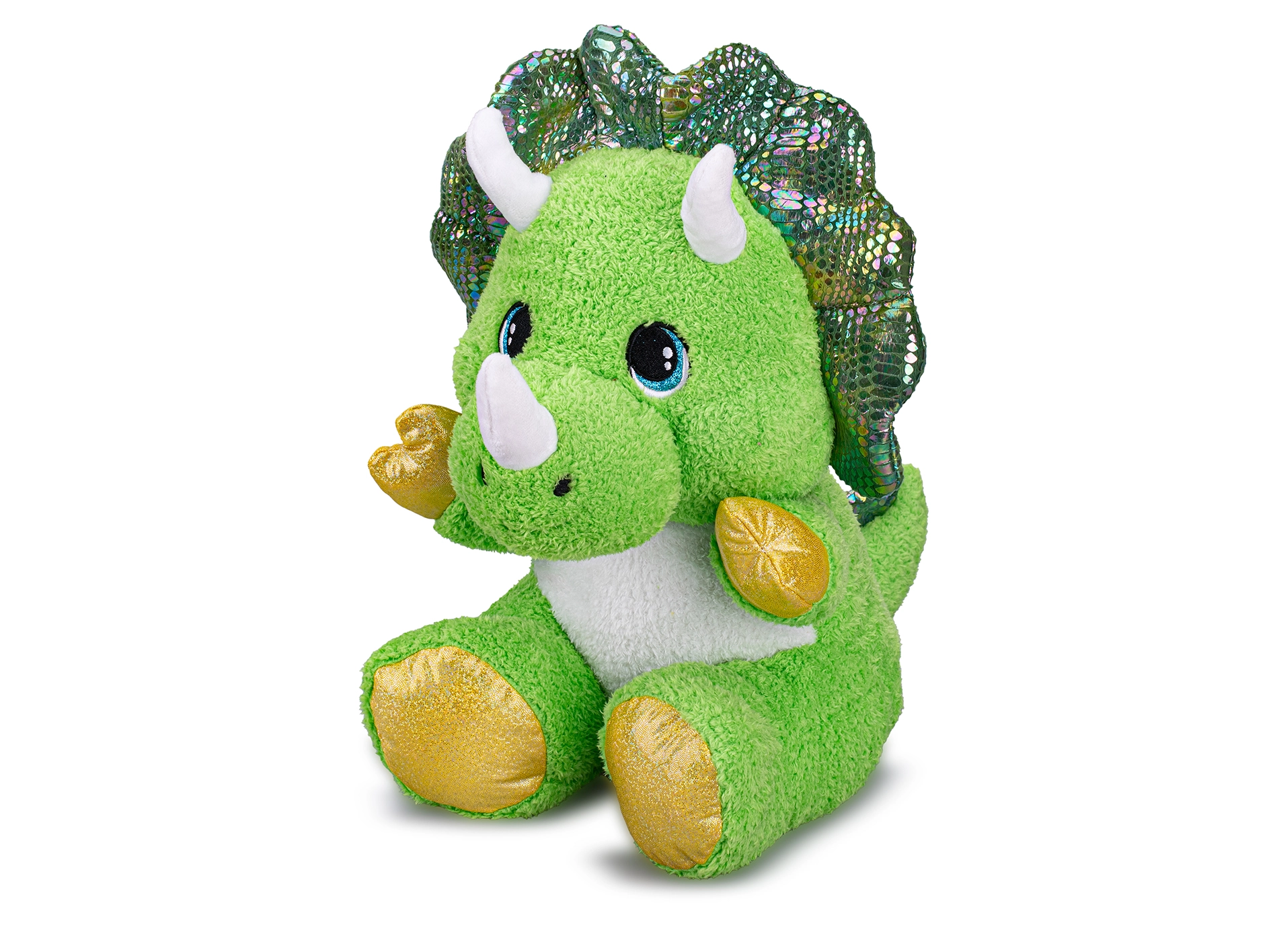 Roztomilý plyšový triceratops s veľkosťou 37 cm v sediacej polohe je mäkučký spoločník pre najmenšie deti už od narodenia. Vďaka jemnému a bezpečnému materiálu je ideálny na maznanie aj pokojný oddych. Zelené sfarbenie a detailné prevedenie podporujú detskú fantáziu a robia z hračky pútavý darček pre malých milovníkov dinosaurov.