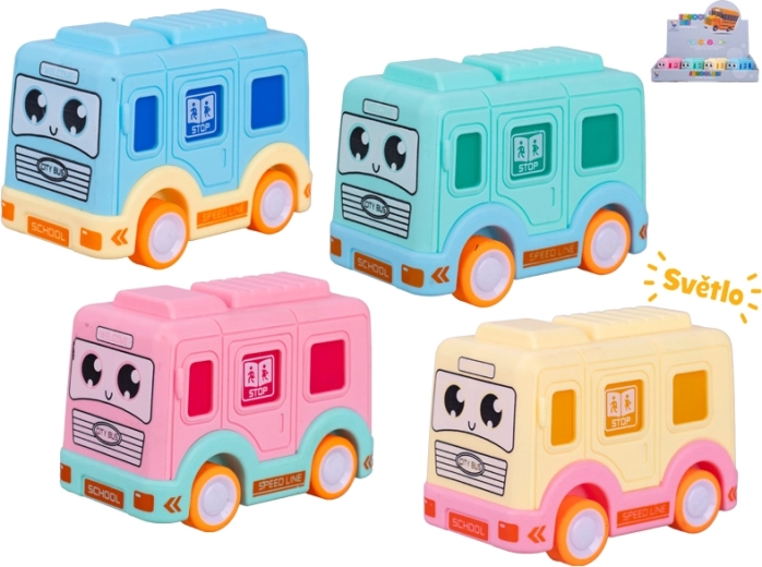 Kompaktná hračka pre malých vodičov: tento autobus s dĺžkou 8,5 cm ponúka pohon na zotrvačník pre plynulý pohyb vpred a svetelné efekty pre ešte väčšiu zábavu. Ideálny pre deti od 3 rokov, podporuje rozvoj jemnej motoriky a fantázie. Dostupný v 4 farbách – modrej, ružovej, zelenej a žltej.