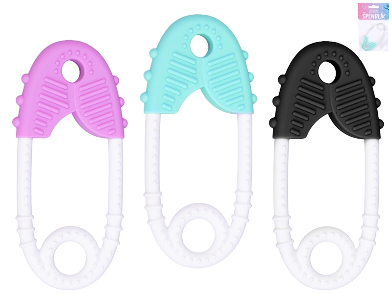 Praktické silikónové hryzátko v tvare zatváracieho špendlíka pre bábätká od narodenia prináša úľavu citlivým ďasnám a podporuje rozvoj jemnej motoriky. Vďaka ľahkému, ergonomickému tvaru ho ľahko uchopia aj tie najmenšie rúčky, zatiaľ čo textúrovaný povrch príjemne masíruje ďasná. Vyrobené z bezpečného, pružného silikónu, jednoducho sa čistí a je k dispozícii v ružovej, čiernej a zelenej farbe.