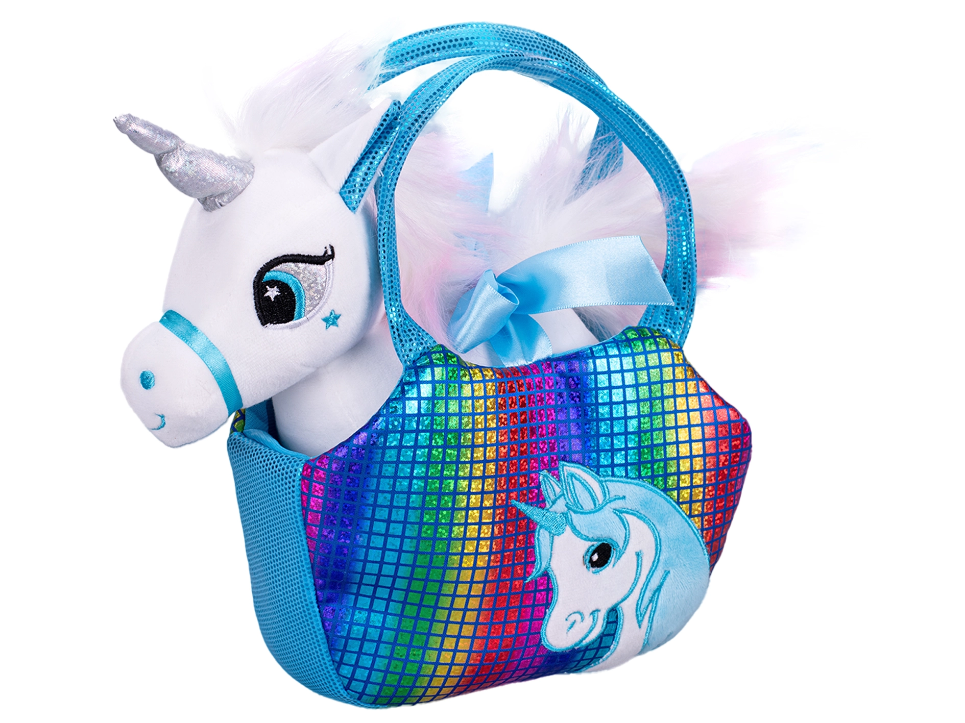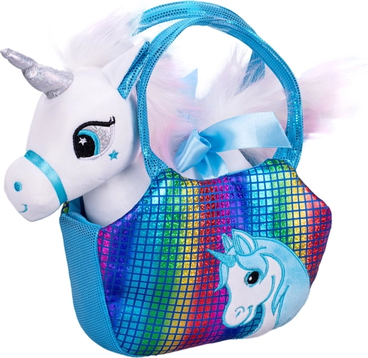Tento pôvabný plyšový jednorožec je vyrobený z jemného a bezpečného plyšu, ktorý je ideálny pre novorodencov aj batoľatá. Vďaka štýlovej kabelke možno hračku ľahko prenášať na prechádzky, návštevy aj do škôlky – a navyše skvelo doplní outfit malých parádnic.