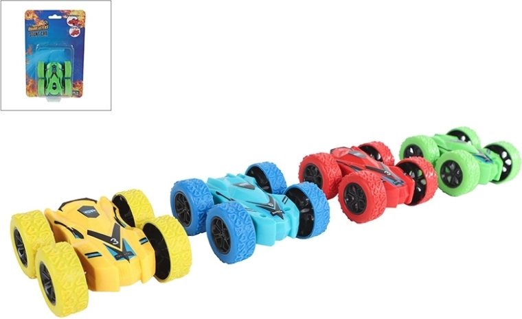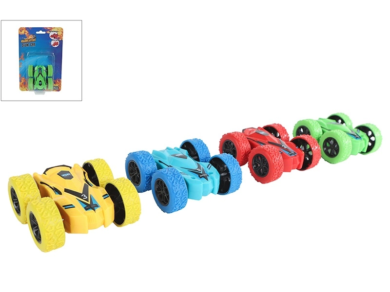Užite si adrenalín s miniatúrnym kaskadérskym vozidlom, ktoré zvláda efektné premety a otočky o 180°. Zotrvačníkový pohon zaručuje jednoduché ovládanie – stačí auto natiahnuť a pustiť. Vďaka kvalitnému spracovaniu z odolného plastu zvládne aj náročnejšie kúsky a pritom zostáva ľahké a prenosné.
