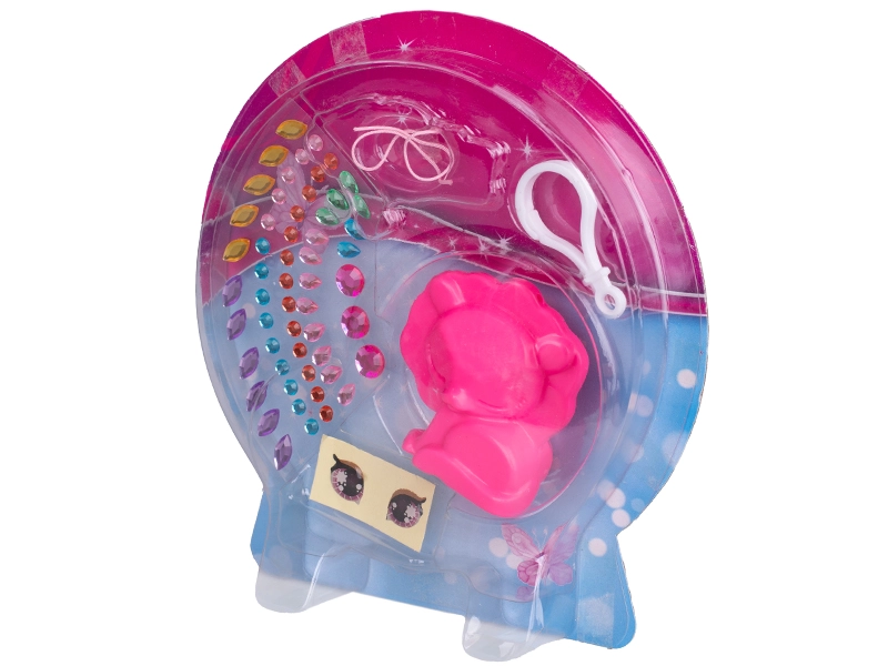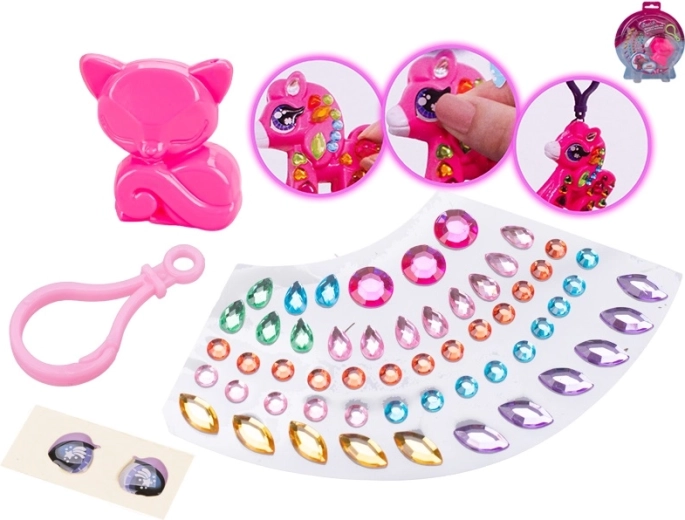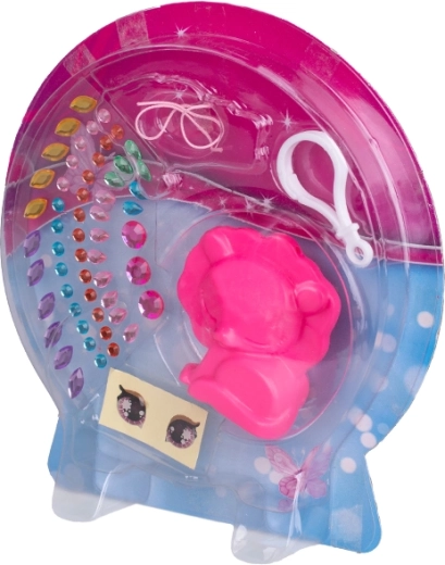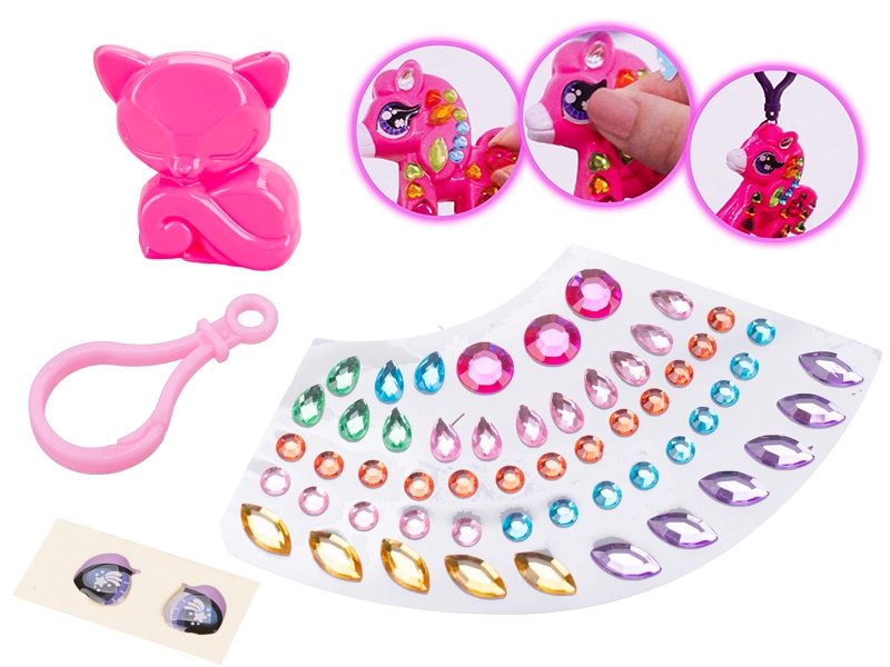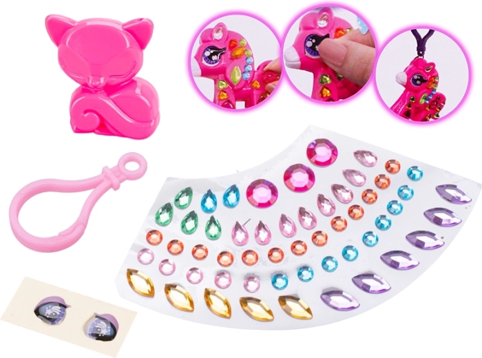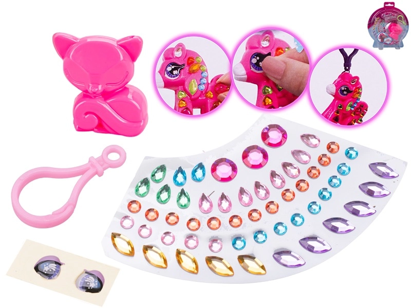 Táto glamour sada je ideálna pre malých tvorivcov, ktorí milujú tvorenie a personalizáciu doplnkov. V balení nájdete všetko potrebné – plastové zvieratko (6 cm), praktickú karabínu na pripnutie a farebné samolepiace kamienky vrátane očných samolepiek. Zdobenie je jednoduché a zábavné, výsledkom je originálna kľúčenka podľa vlastného vkusu.