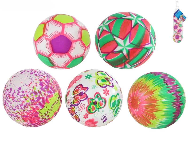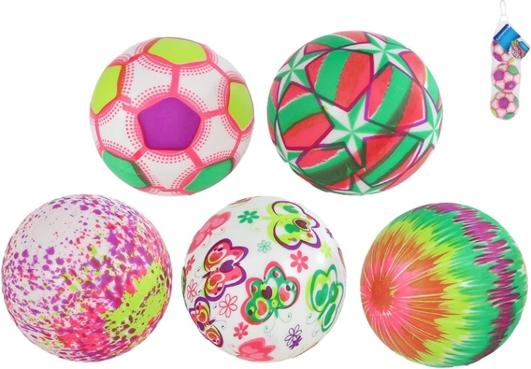 Rozmanité a kontrastné vzory (hviezdy, rozpitné bodky, rozpitné pruhy, futbalový vzor a motýle) priťahujú pozornosť a podnecujú vizuálne vnímanie. Súčasťou balenia je praktická sieťka, v ktorej loptičky jednoducho prenesiete na ihrisko či uložíte doma.