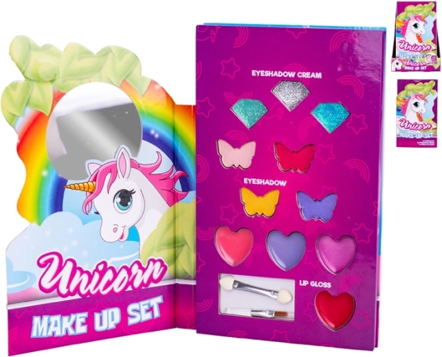 Detská make-up paletka Unicorn prináša zábavu aj kreativitu do sveta malých vizážistiek. Kombinuje jemné odtiene očných tieňov, trblietky pre žiarivý efekt a lesky na pery, ktoré dodajú perám prirodzený lesk a farbu. Vďaka kompaktným rozmerom a praktickému zrkadielku je skvelá na cesty aj na domáce hranie.