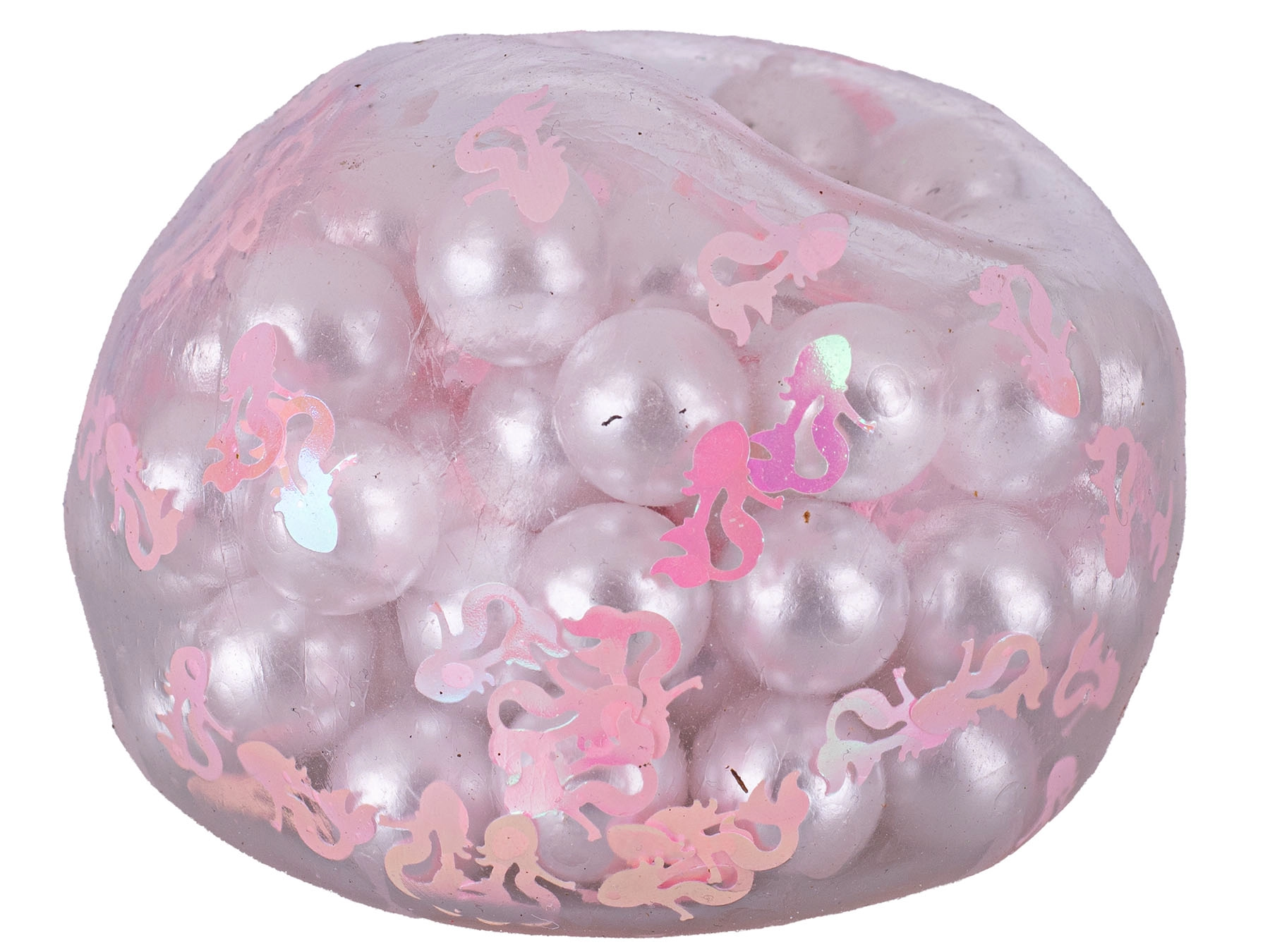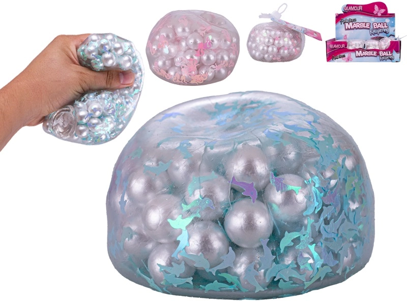 Glamour antistresový loptička poteší deti aj dospelých. Trblietavé prevedenie a tri atraktívne motívy – srdiečka, delfíny a morské panny – z neho robia zábavnú a zároveň upokojujúcu pomôcku na každodenné hranie aj relax. Pri stlačení sa chrumkajúce guľôčky vo vnútri presúvajú, jemne praskajú a vytvárajú príjemný zvuk, ktorý pomáha sústredeniu aj uvoľneniu.