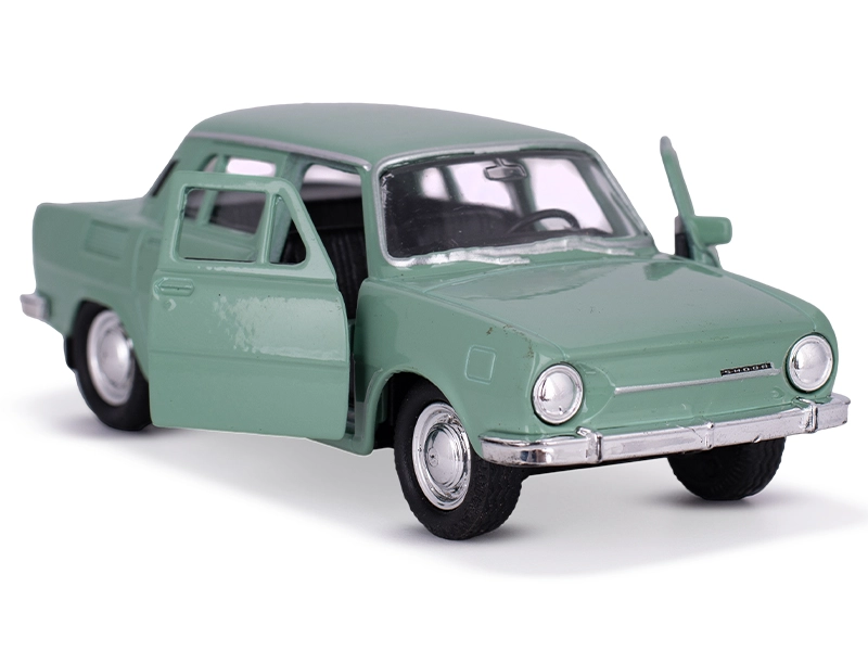 Kovový model vozidla Škoda 100 je starostlivo spracovanou replikou legendárneho československého sedanu. Vďaka realistickým proporciám, chrómovaným detailom a priesvitným oknám s interiérom pôsobí na poličke aj pri hre mimoriadne verne. Integrovaná funkcia spätného chodu dodá zábave dynamiku – stačí natiahnuť a pustiť.