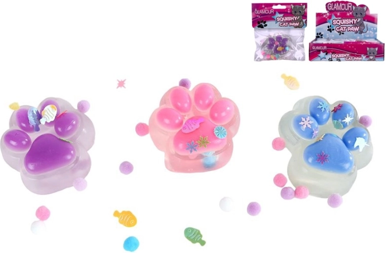 Uvoľnite napätie s hračkou Glamour mačacia labka – mäkkým, pružným squishy v tvare labky naplneným slizom s trblietkami. Vďaka pružnému materiálu, trblietavému efektu a kompaktným rozmerom prináša príjemný pocit z stláčania kedykoľvek počas dňa. Skvelé na relax, zábavu a ako štýlový antistresový doplnok pre deti aj dospelých.
