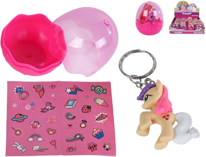 Roztomilý prívesok na kľúče v tvare jednorožca poteší malých aj veľkých fanúšikov čarovných bytostí. Ponúka kompaktnú veľkosť 5 cm, je vyrobený z odolného plastu a dodáva sa vo vajíčku so samolepkami pre ešte väčšiu zábavu. K dispozícii je šesť farebných variantov, takže si každý nájde svojho favorita. Ideálny ako malý darček či zberateľský doplnok pre deti od 3 rokov.