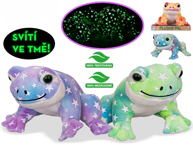 Roztomilá plyšová žabka s veľkosťou 12 cm, ktorá svieti v tme a pomáha deťom cítiť sa v noci bezpečne. Vyrobená z mäkučkého kvalitného plyšu, vhodná už od narodenia. Dostupná v 4 žiarivých farbách – zelenej, oranžovej, fialovej a modrej.