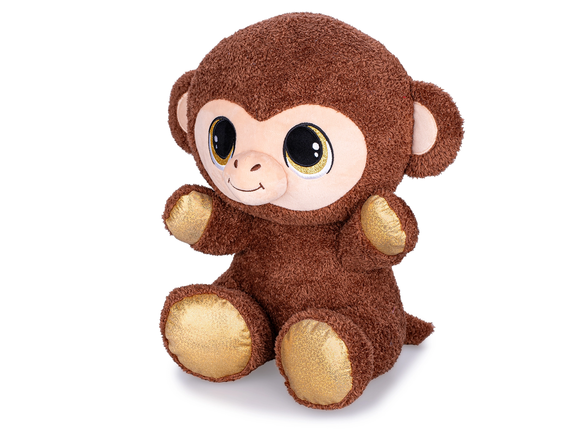 Táto plyšová opica je navrhnutá na každodenné túlenie aj prvé objavovanie sveta. Mäkký spandex je príjemný na dotyk, odolný voči opotrebovaniu a zároveň šetrný k jemnej detskej pokožke. Sediace prevedenie drží tvar, takže sa opica stane krásnym doplnkom postieľky či police.