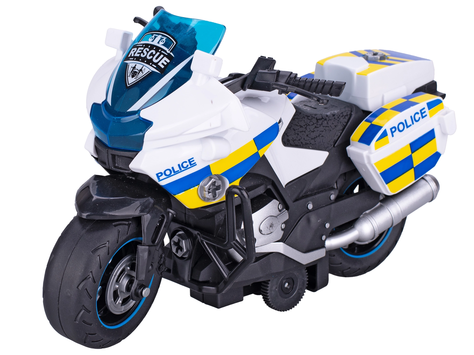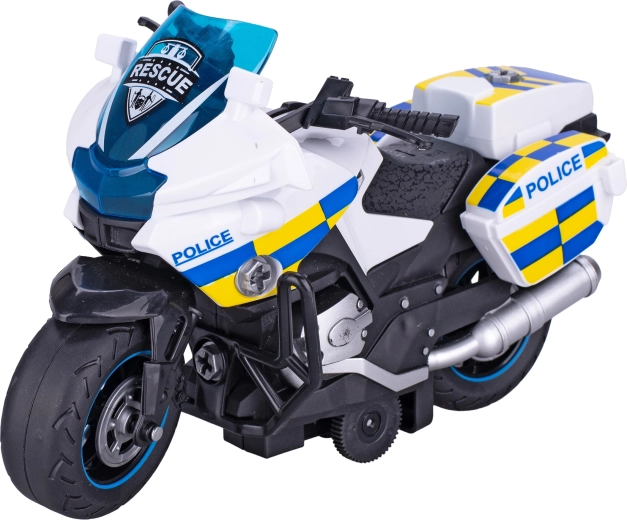Táto plastová policajná motorka je navrhnutá s dôrazom na detail a realistické prvky, ktoré podporujú detskú predstavivosť. Vďaka skrutkovacím dielom si deti môžu motorku samy rozložiť a zložiť, čím si trénujú zručnosť a koordináciu oko–ruka. Pohon na zotrvačník dodá hre šmrnc – po natiahnutí motorka svižne vyrazí vpred.