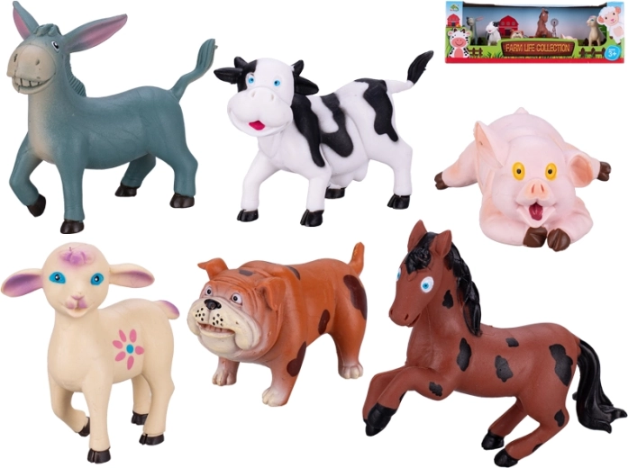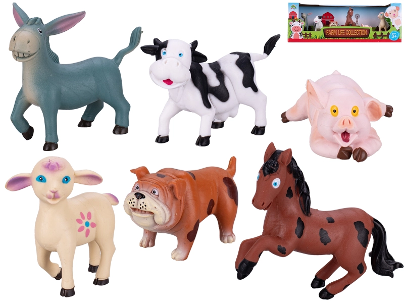 - Realistické figúrky hospodárskych zvierat: kôň, krava, baran, pes, prasa, osol
