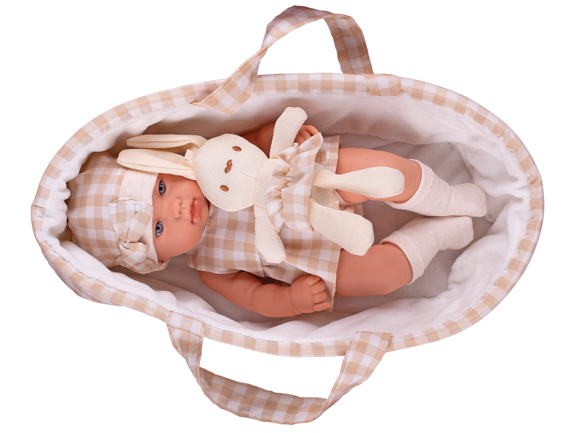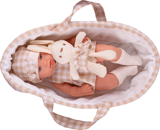 Roztomilá bábika s veľkosťou 33 cm s pevným telíčkom a realistickými detailmi poteší každého malého opatrovníka. Má otvorené oči, jemne pootvorené ústa a je zladená v elegantných béžových tónoch. Súčasťou je nosič a plyšový zajačik na rozvoj empatie a fantázie. Dodávané v darčekovej krabici, ideálne ako darček.