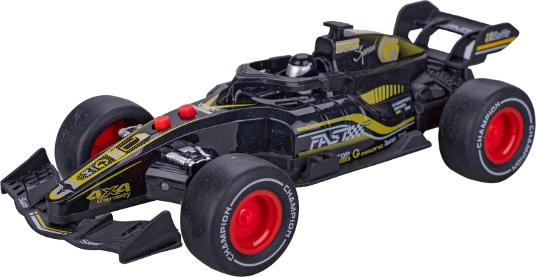 Zažite napätie ako na skutočnej trati s touto závodnou formulou s dĺžkou 19 cm. Vďaka zotrvačníkovému pohonu sa po natiahnutí sama rozbehne, svetelné a zvukové efekty umocnia realističnosť a dvojica figúrok pilotov pridá hre ešte viac možností. Hračka je vyrobená z kvalitného plastu, je odolná, vhodná od 3 rokov a batérie sú súčasťou balenia – zábava môže začať hneď.