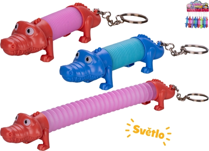 Zábavný a praktický prívesok na kľúče v tvare krokodíla, ktorý sa po natiahnutí rozbehne dopredu a rozsvieti sa. Interaktívny pohyb, svetlo na batérie a kompaktné rozmery z neho robia skvelý doplnok pre deti aj dospelých.
