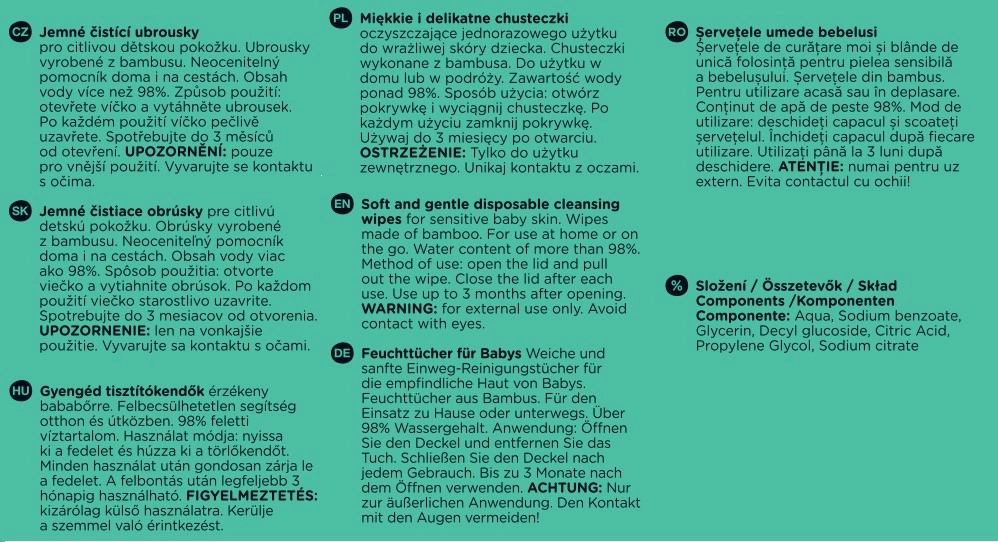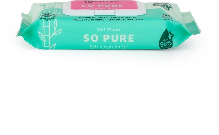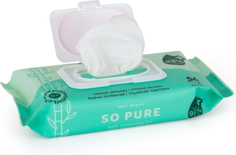 Vysoko jemné vlhčené obrúsky z bambusu SO PURE sú ideálne na každodennú starostlivosť o bábätká aj celú rodinu. Vďaka viac než 98 % vody zabezpečujú šetrné očistenie bez zbytočných prísad, sú bez parfumácie a vhodné aj pre veľmi citlivú pokožku. Bambusové vlákno je prirodzene mäkké, príjemné na dotyk a spolu s biologickou odbúrateľnosťou predstavuje ekologickú voľbu.