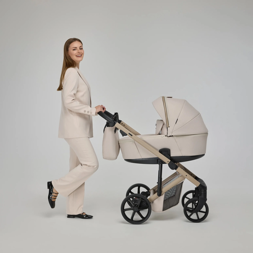 Adamex Dolce 2v1 kombinuje moderný dizajn, špičkové odpruženie a praktickosť. Hlboká vanička má úplne odnímateľnú vonkajšiu látku striešky s integrovanou vzdušnou moskytiérou a dva vetracie otvory na zips pre ideálnu cirkuláciu vzduchu. Slnečná clona efektívne chráni pred lúčmi, zatiaľ čo penový vyrovnávací matrac s vystužením podopiera bábätko a zvyšuje pohodlie pri spánku.