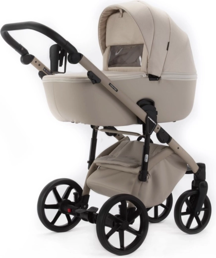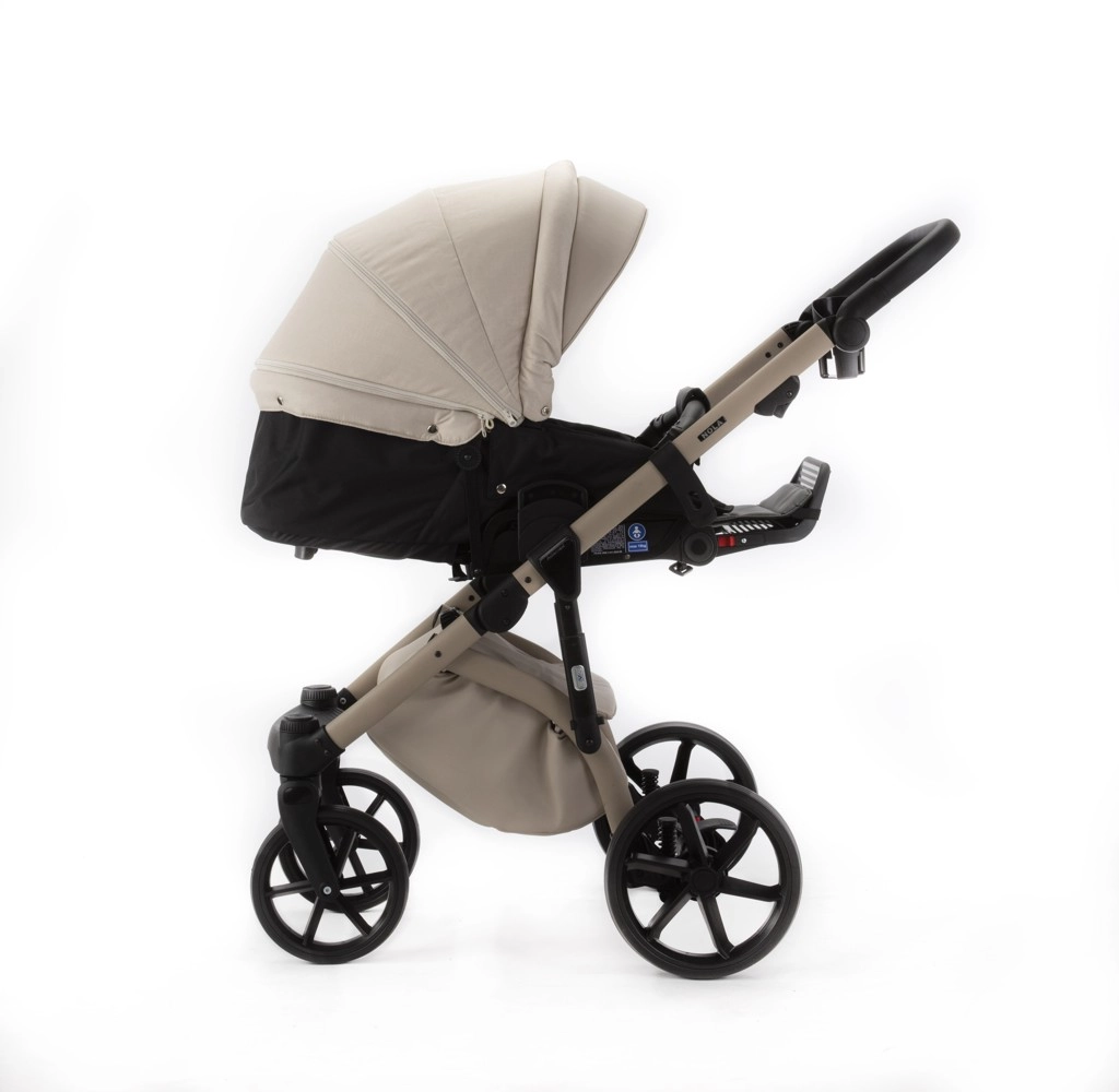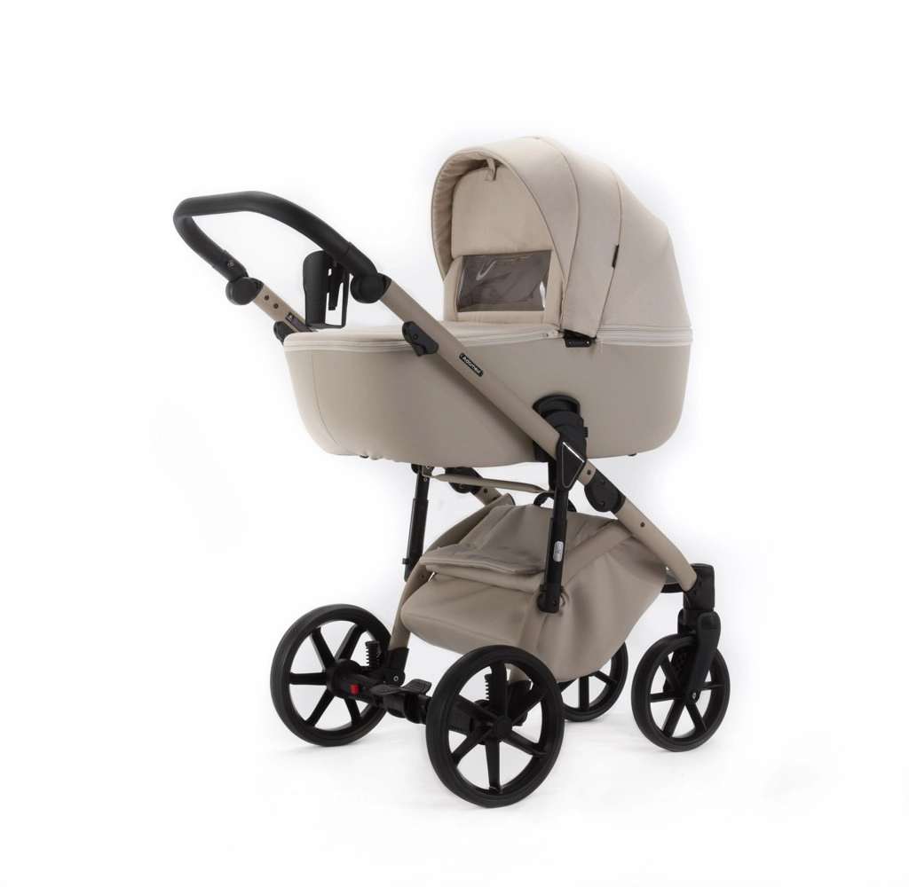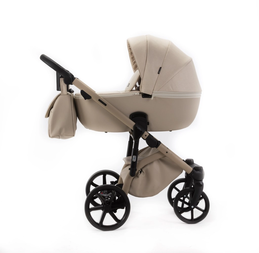 Elegantný kombinovaný kočík ADAMEX Nola z kolekcie Natura v odtieni Vanilla spája jednoduchosť, praktickosť a štýl. Vďaka nastaviteľnému odpruženiu, bezúdržbovým PU kolesám a priestrannej vaničke aj športovej sedačke ponúkne pohodlie v každom teréne. Súčasťou je prebaľovacia taška, pláštenka a sieťka proti hmyzu pre bezstarostné prechádzky po celý rok.