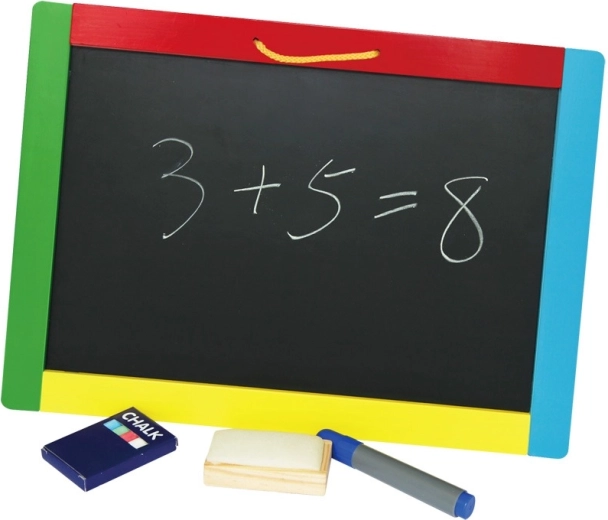 V balení nájdete všetko potrebné: tabuľu so šnúrkou na zavesenie, sadu kried a fixiek a stieraciu hubku. Odolná drevená konštrukcia zaistí stabilitu a bezpečné používanie.