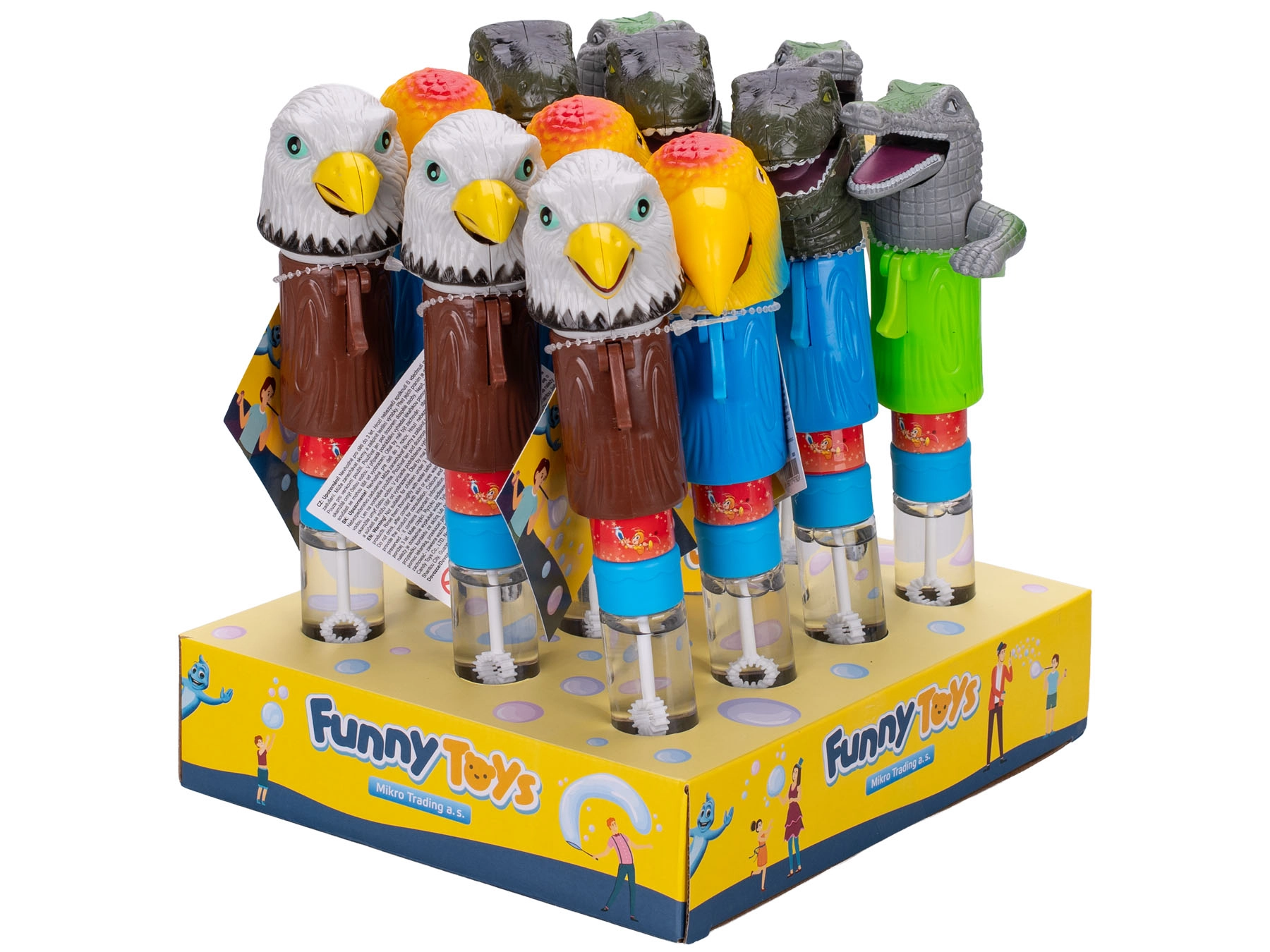 - Interaktívna zábava – otváracie ústa/zobák pri fúkaní bublín.