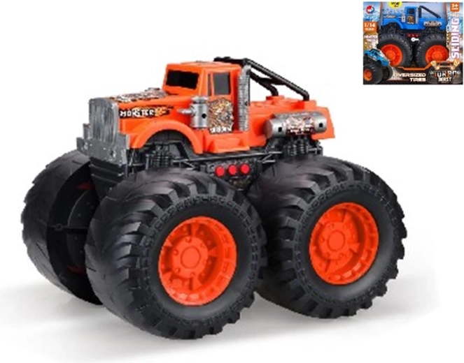 Objavte akčnú zábavu s týmto robustným monster truckom s dĺžkou 28 cm, ktorý nadchne malých fanúšikov terénnych vozidiel. Vďaka voľnobehu je ľahko ovládateľný, svetelné a zvukové efekty zvyšujú realistickosť hry a odolný plast zaručuje dlhú životnosť. K dispozícii v dvoch farbách – modrej a oranžovej.