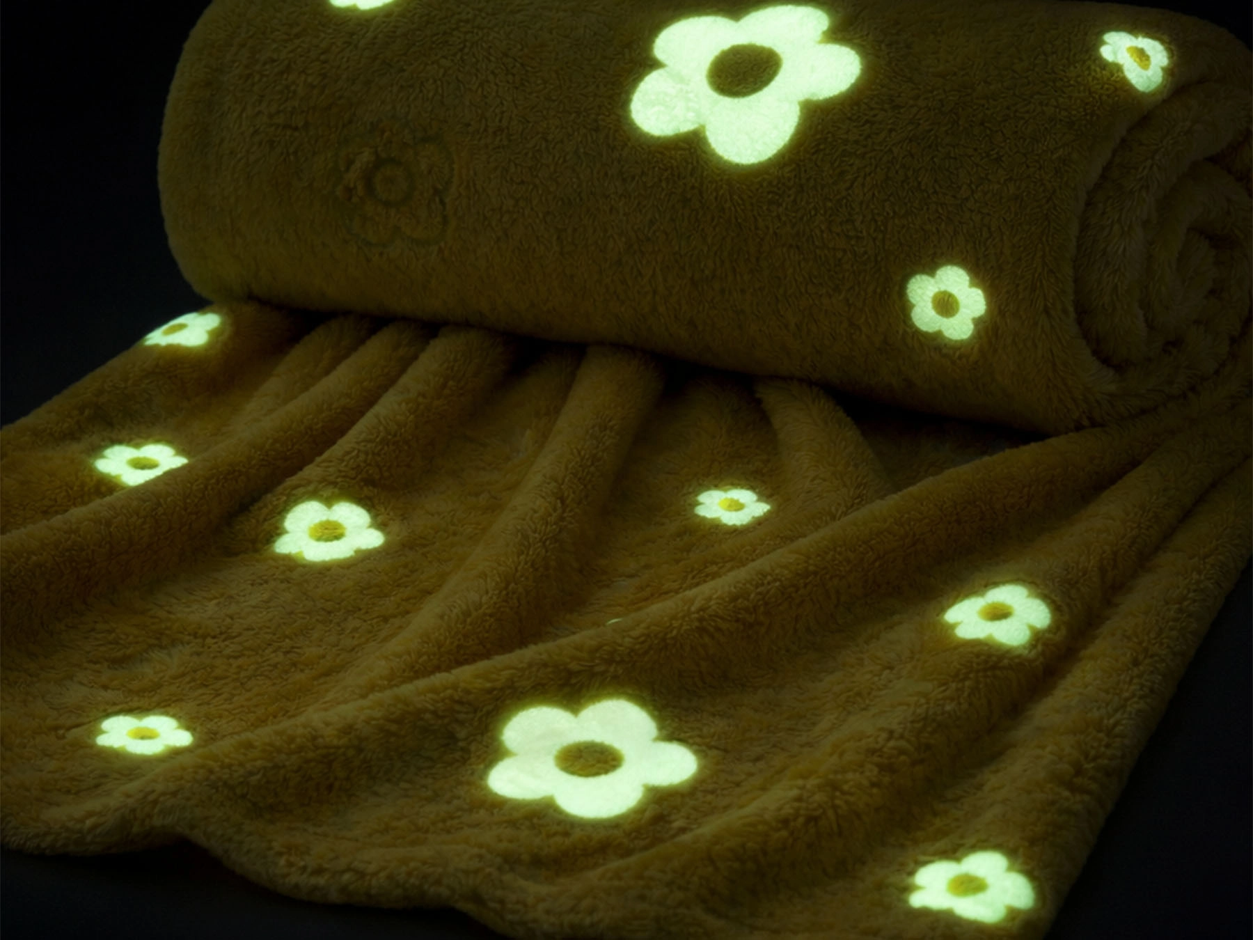 Vychutnajte si najjemnejšie pohodlie so svietiacou plyšovou dekou s rozmermi 100 × 150 cm. Žltý podklad s roztomilým kvetinovým motívom rozžiari každú izbu a vďaka luminiscenčnej technológii po nasvietení v tme jemne svieti. Skvelá pre deti aj dospelých, ideálna na čítanie, filmové večery aj leňošenie.