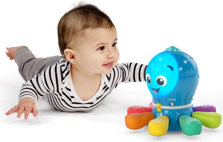 Go Opus Go prináša do hry pohyb, hudbu a svetlá. Chobotnica sa rozsvieti, točí a prehráva 4 originálne piesne zo série BABY EINSTEIN Ocean Explorers, ktoré zaujmú deti už od 3 mesiacov. Vďaka mäkkým dotykovým častiam a farebným „chápadlám“ sa deti prirodzene učia farby, tvary a čísla, zatiaľ čo trénujú koordináciu oko–ruka a objavujú príčinu a následok.