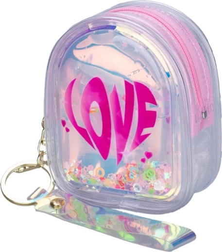 Hľadáte drobný, ale výrazný doplnok, ktorý skombinuje štýl a praktickosť? Glamour mini batôžtek s nápisom „LOVE“ je holografický prívesok na kľúče, ktorý dodá vašim veciam jedinečný lesk. Vďaka zipsu bezpečne uložíte mince, slúchadlá či iné malé nevyhnutnosti a budete ich mať vždy po ruke.