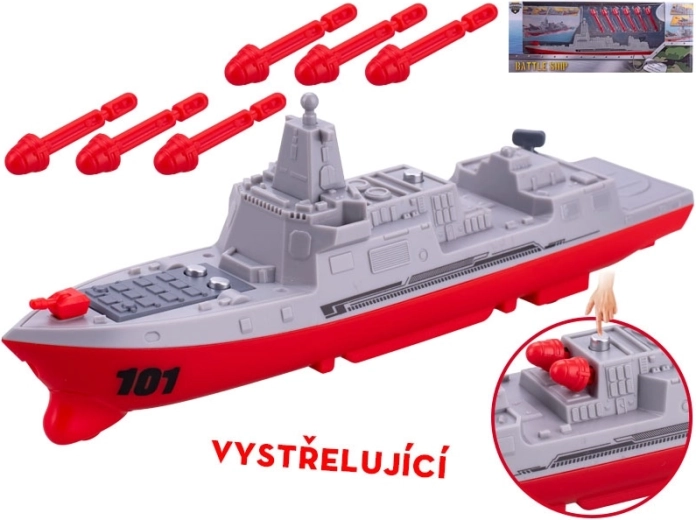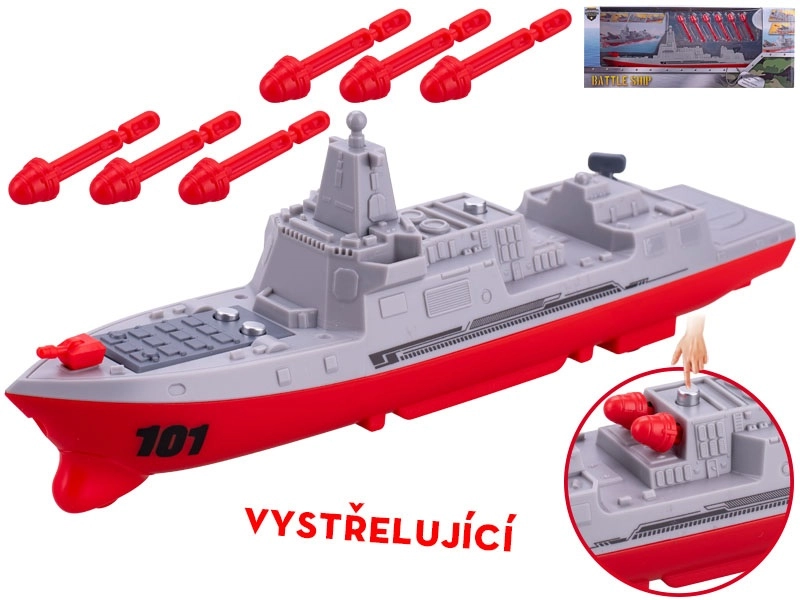 Realistická hračka vojenskej lode s dĺžkou 24 cm prináša deťom akčnú zábavu bez batérií. Vďaka zotrvačníkovému pohonu sa loď plynulo rozbieha vpred a strieľa projektily pre ešte väčšie napätie. Autentické sivé prevedenie s červenými detailmi osloví malých fanúšikov techniky, zatiaľ čo jednoduché ovládanie podporuje rozvoj motoriky a koordinácie. Vhodné pre deti od 3 rokov.