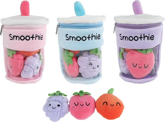 Objavte hravý svet s plyšovým smoothie kelímkom FLUFFY MENU, ktorý ukrýva tri roztomilé ovocné kúsky. Zipsom ľahko otvoríte kelímok, vyberiete jahôdku, čučoriedku či ďalšie plody a necháte deti tvoriť vlastné príbehy. Mäkučký materiál je príjemný na dotyk a ideálny na každodenné mojkanie.