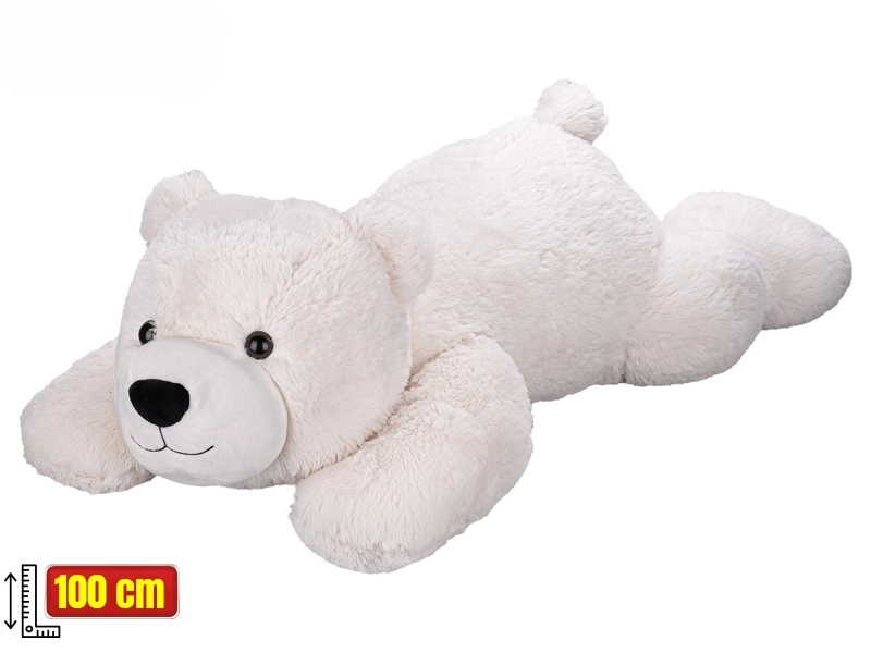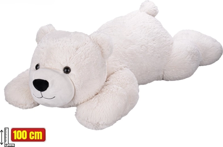 Objavte rozkošného spoločníka na maznanie: tento ležiaci plyšový ľadový medveď s dĺžkou 100 cm z kolekcie Plush Friends je vyrobený z mäkkého a hebkého materiálu, je bezpečný od narodenia a skvele poslúži ako dekorácia do detskej izby aj ako dokonalý darček pre malých aj veľkých.