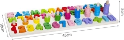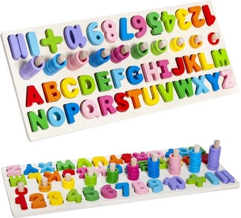 Táto multifunkčná drevená skladačka spája zábavu a učenie v jednom. Deti pri hraní spoznávajú tvary písmen a číslic, učia sa ich pomenovávať, stavať prvé jednoduché slová a precvičujú počítanie pomocou krúžkov na kolíkoch. Živá farebnosť motivuje k objavovaniu a podporuje kreativitu aj sústredenie.