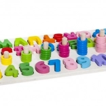 Drevená vzdelávacia abeceda a čísla s krúžkami