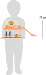 Táto drevená hračka je ideálna pre malých automobilových nadšencov. Autoservis a čerpacia stanica prinášajú zábavu na dvoch poschodiach a ponúkajú tak ešte viac priestoru na objavovanie. Deti si zamilujú realistické dizajnové prvky vrátane rampy a parkoviska zabezpečeného závorou.