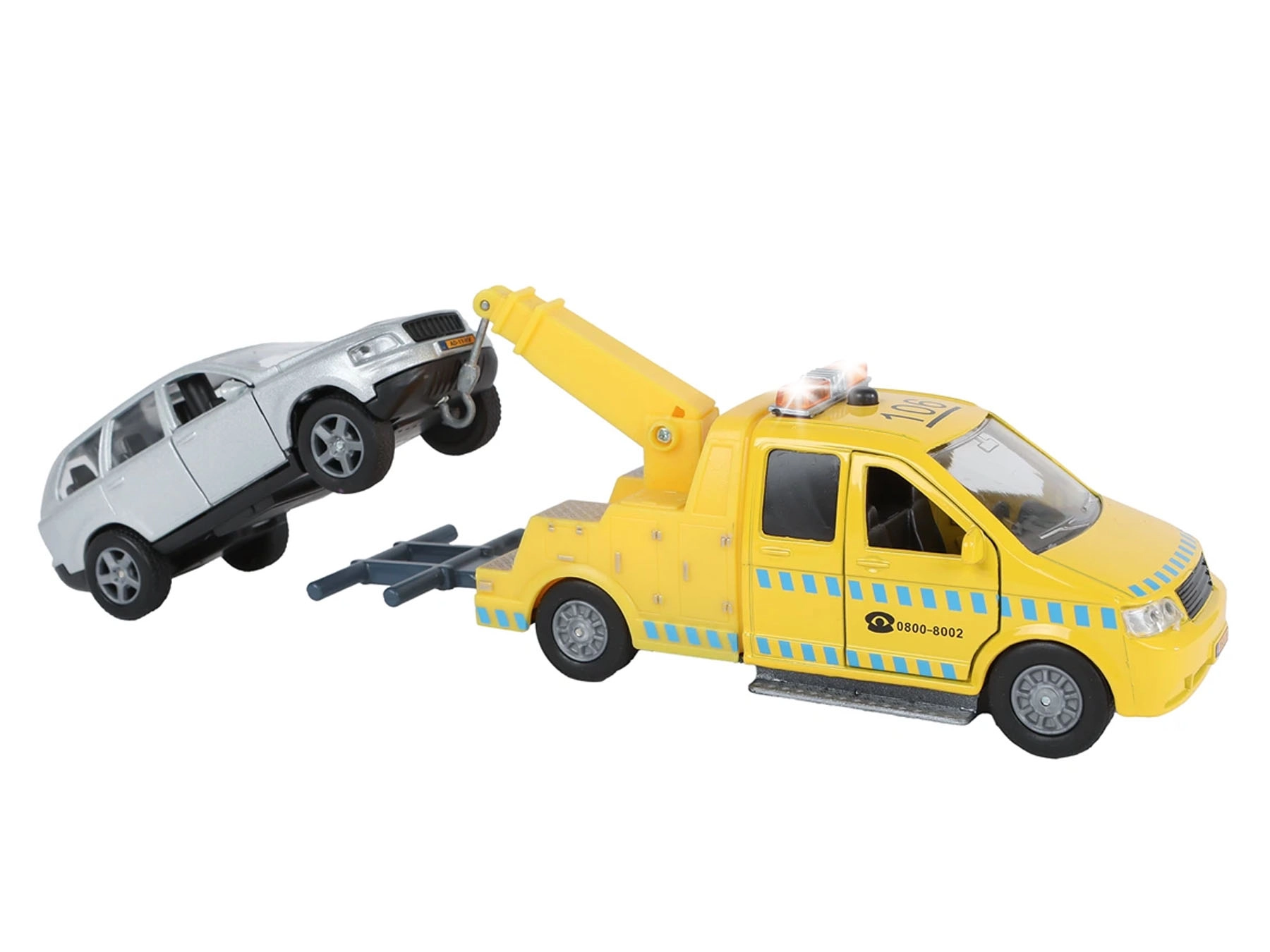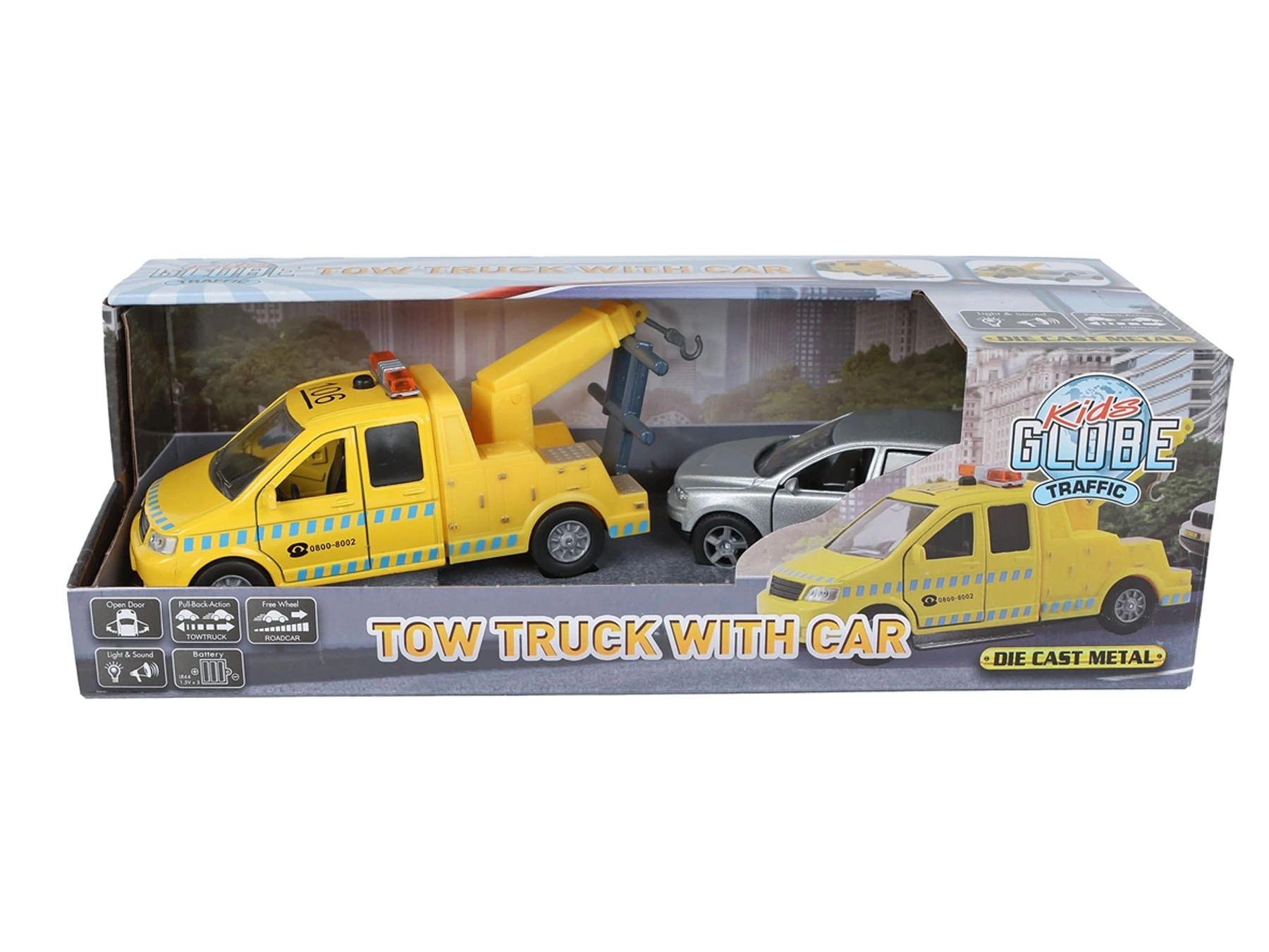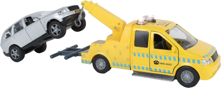 O realistický zážitok sa starajú svetelné a zvukové efekty aktivované tlačidlom na streche odťahovky. Kvalitná kombinácia kovu a plastu zaručuje dlhú životnosť aj pri častom hraní. Vďaka priloženým batériám je set pripravený na okamžité použitie a skvele rozvíja detskú fantáziu aj motoriku.