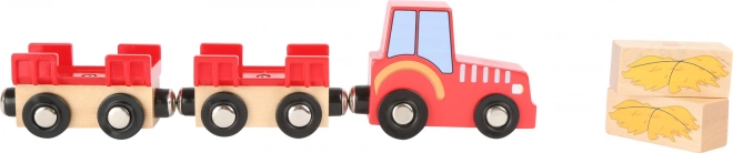 Táto drevená farma je ideálna pre deti, ktoré majú rady dobrodružstvá na vidieku. Sada obsahuje 19 dielov, vrátane robustnej červenej stodoly s funkčnými vrátami, traktora s prívesom, a niekoľkých farmárskych zvierat, ako sú kôň, krava a prasiatko. Hračka nielenže podnecuje kreativitu a motorické zručnosti, ale tiež zoznamuje deti so základmi farmárskeho života.