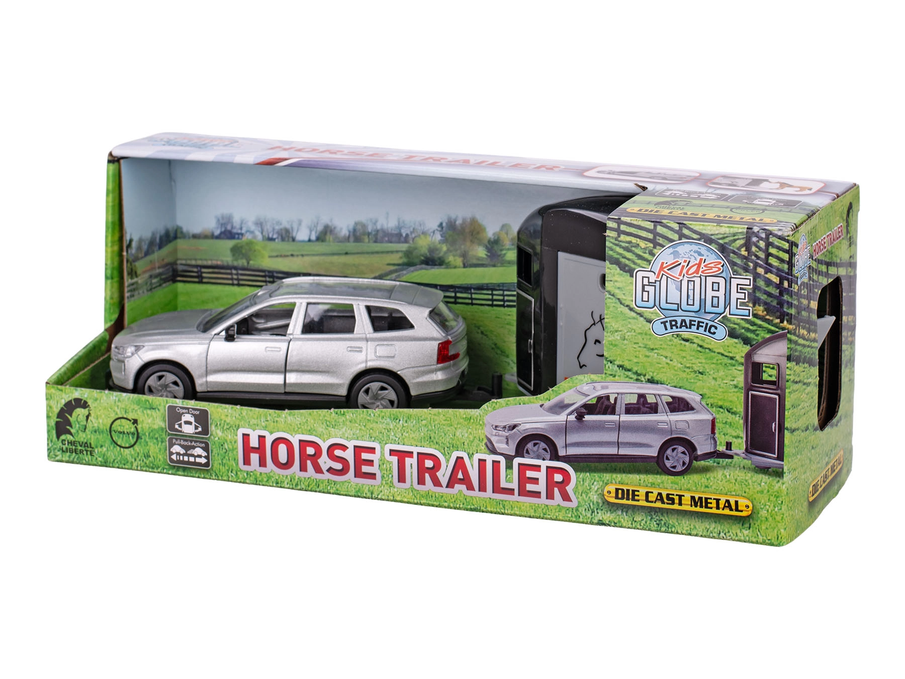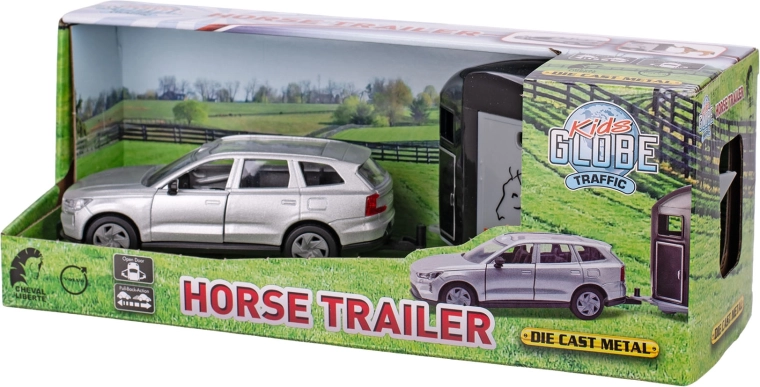 Realistický kovový model KIDS GLOBE TRAFFIC VOLVO EX90 s prívesom na kone prináša deťom autentický zážitok z farmárskeho prostredia. Ponúka detailné spracovanie, funkciu spätného chodu a odolnú kombináciu kovu a plastu pre dlhú životnosť. S kompaktnou dĺžkou 28 cm je ideálny na hranie doma aj vonku a poteší malých farmárov aj milovníkov koní.