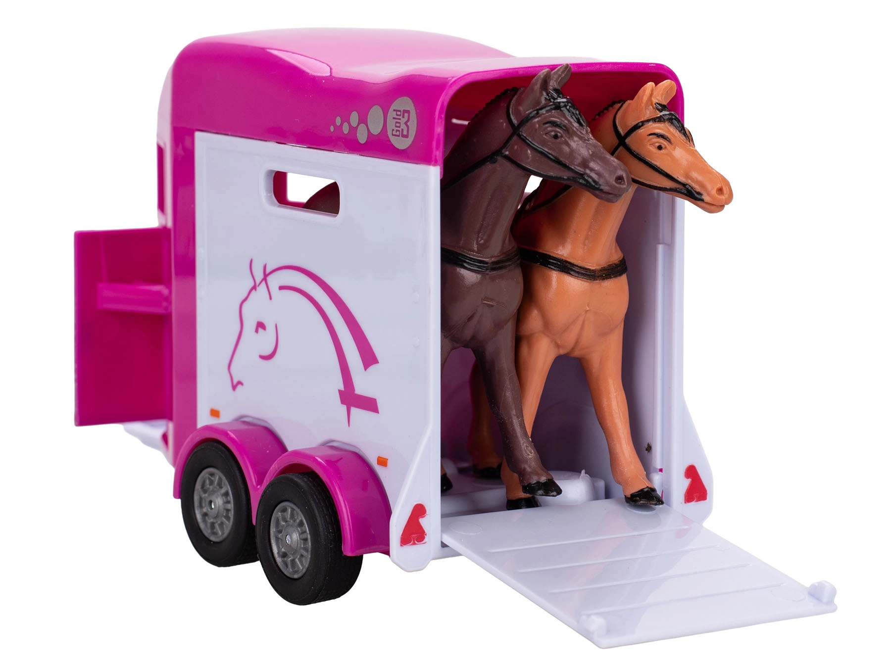 Príves je navrhnutý na bezpečné naloženie a prepravu koníkov a skvele doplní detské scenáre od farmy po jazdecké preteky. Model je kompatibilný s bežnými figúrkami koní (nie sú súčasťou balenia) a svojimi rozmermi 28 cm pôsobí výrazne v každej zbierke.