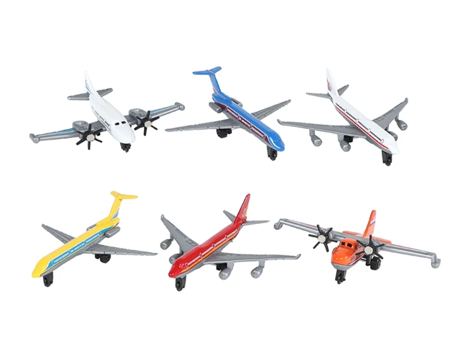 Sada 2‑Play Traffic prináša šesť starostlivo navrhnutých modelov dopravných lietadiel, ktoré zaujmú realistickým vzhľadom aj odolným vyhotovením. Kovové časti zabezpečujú dlhú životnosť, plastové diely znižujú hmotnosť a uľahčujú pohodlné ovládanie. Vďaka voľnobehu sa lietadlá ľahko pohybujú po rovnom povrchu a podporujú kreatívnu hru.